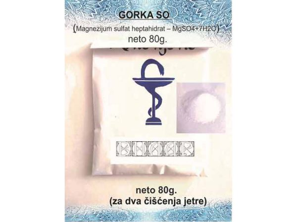 Upotrebljava se u procesu čišćenja jetre, koje se sprovodi u okviru programa antiparazitnog čišćenja. Gorka so deluje tako da opusti kanale, pa prolazak većih kamenčića bude gladak i bezbolan. Ovom metodom izbacujete otpadne materije i toksine nataložene u žučnoj kesi i jetri. Takodje, Gorka so služi da tanko i debelo crevo oslobodi od fecesa. Najbolje je ne počinjati čišćenje jetre bez prethodnog čišćenja od parazita.